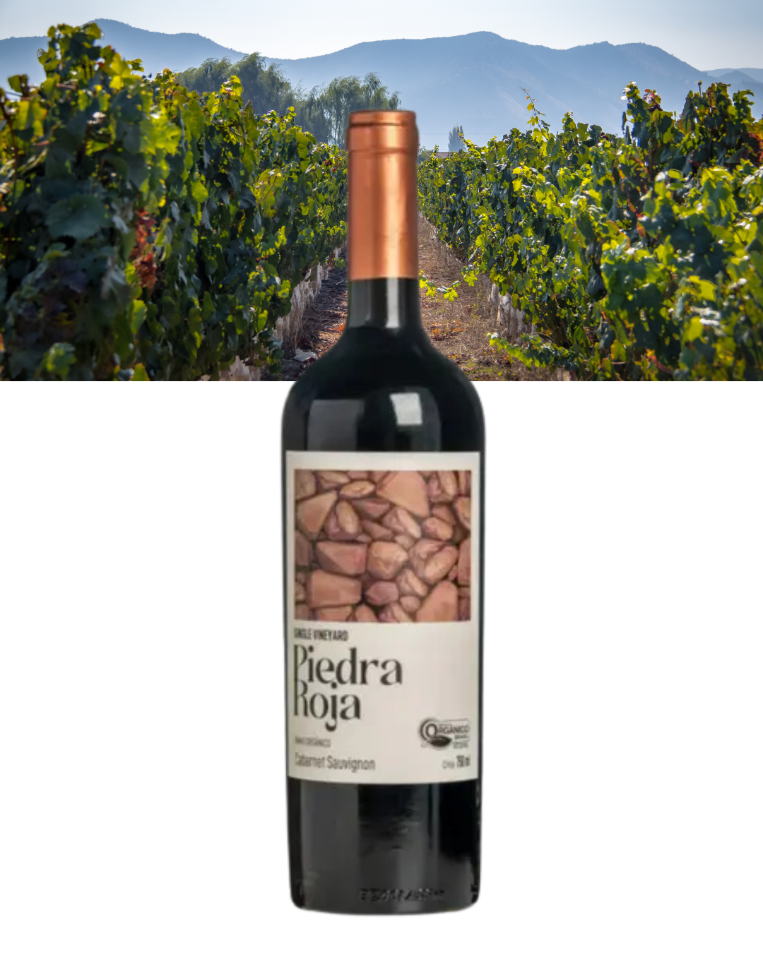 O Vinho Piedra Roja Single Vineyard Cabernet Sauvignon apresenta uma coloração rubi intensa, com aromas complexos de frutas negras, como cassis e ameixa, combinados com notas sutis de pimenta-preta, tabaco e baunilha. No paladar, é encorpado e aveludado, com taninos maduros que proporcionam estrutura e elegância. A acidez equilibrada oferece frescor e um final longo e persistente. Este vinho tinto é elaborado 100% com uvas da variedade Cabernet Sauvignon, cultivadas em vinhedos sustentáveis e orgânicos.